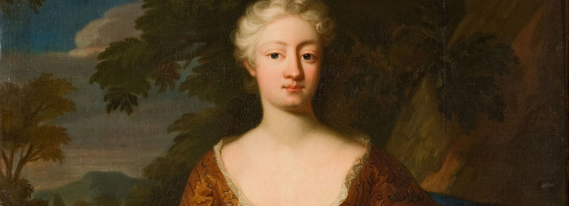 Luise Dorothea Sophie porträtteras här i en skogsglänta. I sitt knä har hon en bukett med kungsängsliljor, anemoner och en stor ros. Hon föddes i Berlin år 1680 som dotter till Preussens förste kung Fredrik I. När hon var 20 år gammal gifte hon sig med sin kusin Fredrik, som var arvprins av Hessen-Kassel. Hon var dock sjuklig och dog bara fem år senare, och äktenskapet med Fredrik resulterade inte i några barn. Fredrik gifte sedan om sig med Ulrika Eleonora av Sverige och blev sedermera kung av Sverige, som Fredrik I. Anledningen till att porträttet finns i Sverige är för att det togs hit av Fredrik som ett av flera porträtt av hans släkt.