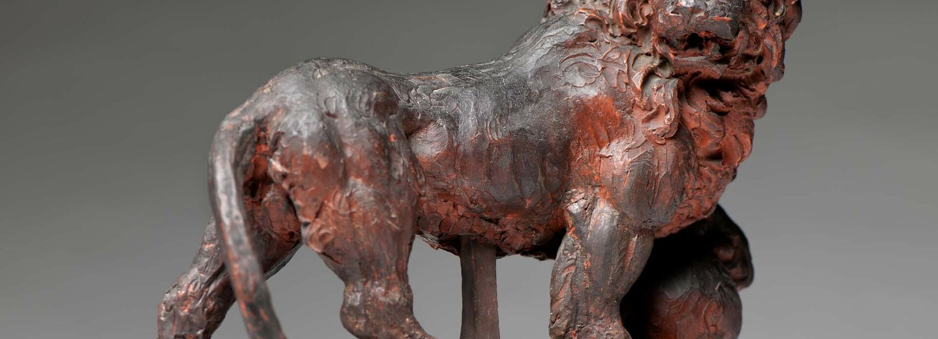 Den här lilla skulpturen av vax och trä skapades omkring år 1698 av den franske skulptören Jacques Foucquet d.ä. Han var inkallad till Sverige, tillsammans med flera andra franska konstnärer, för att arbeta med utsmyckningen på Stockholms slott. Vaxskulpturen användes som en förberedande skiss för de två stora bronsskulpturerna som föreställer lejon som gjöts mellan 1702-1704 och står på ”Lejonbacken” invid slottets norra sida. Bronslejonen är Sveriges första offentliga skulpturer och har stått på samma plats sedan år 1704.