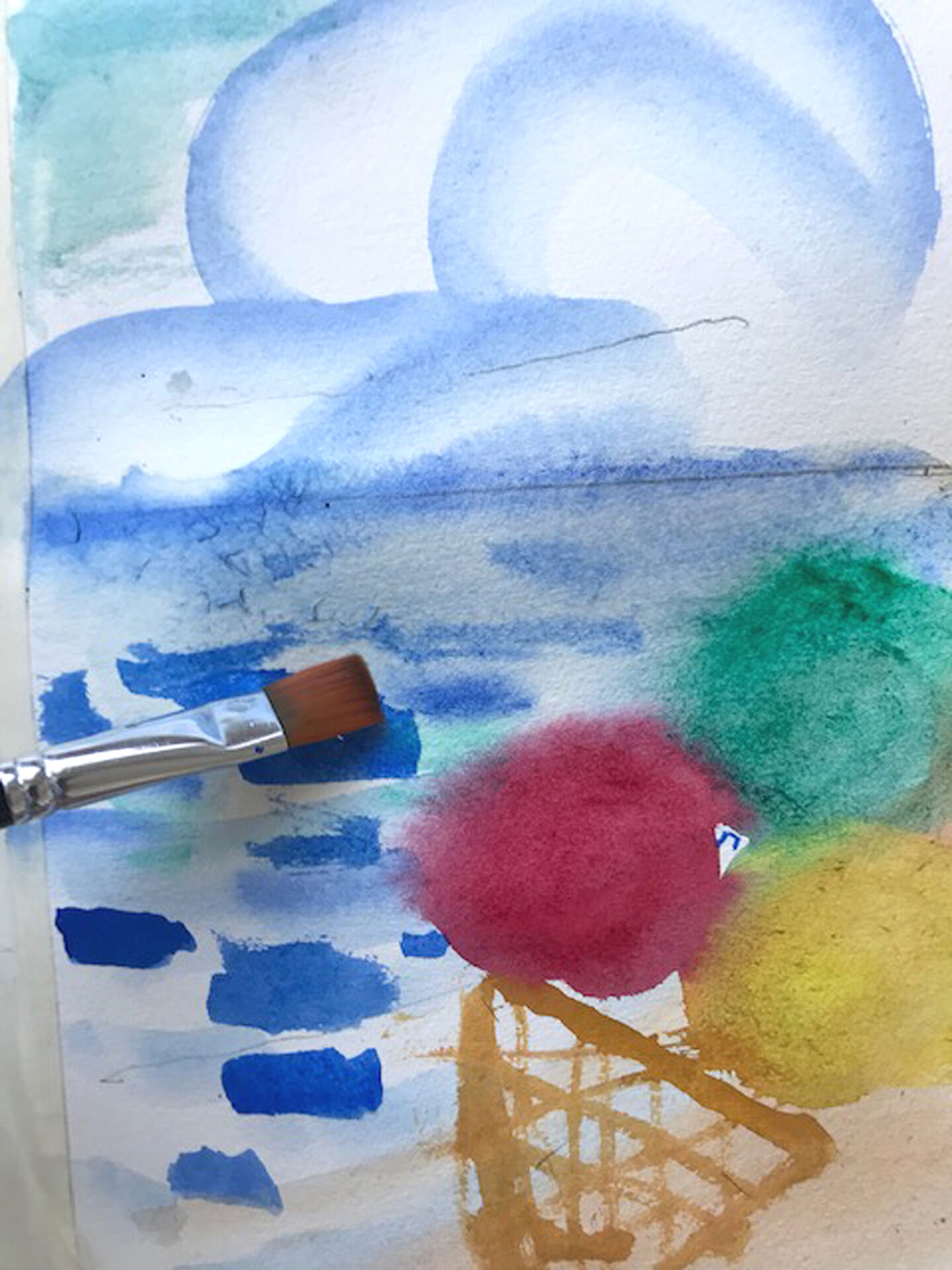 Tips: Här är några idéer om vad du kan måla på stranden: snäckor, stenar, sandslott, glass, vattenmelon, parasoll, undervattensvärldar, vågor och moln över vattnet, lekande njutande badande människor och sist men inte minst horisonten!