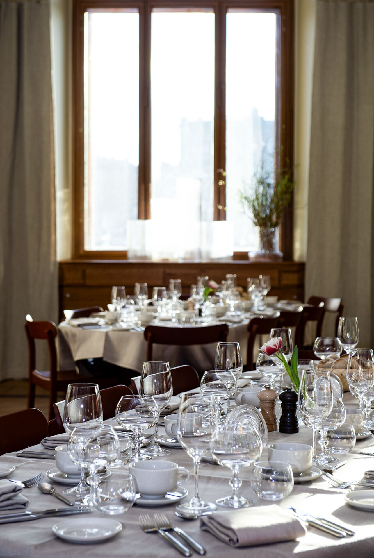Kvällstid uthyres restaurangens ståtliga rum med utsikt över slottet, till större privata festmåltider, mingel eller företagsevent. Restaurangen erbjuder även frukostarrangemang för större sällskap.