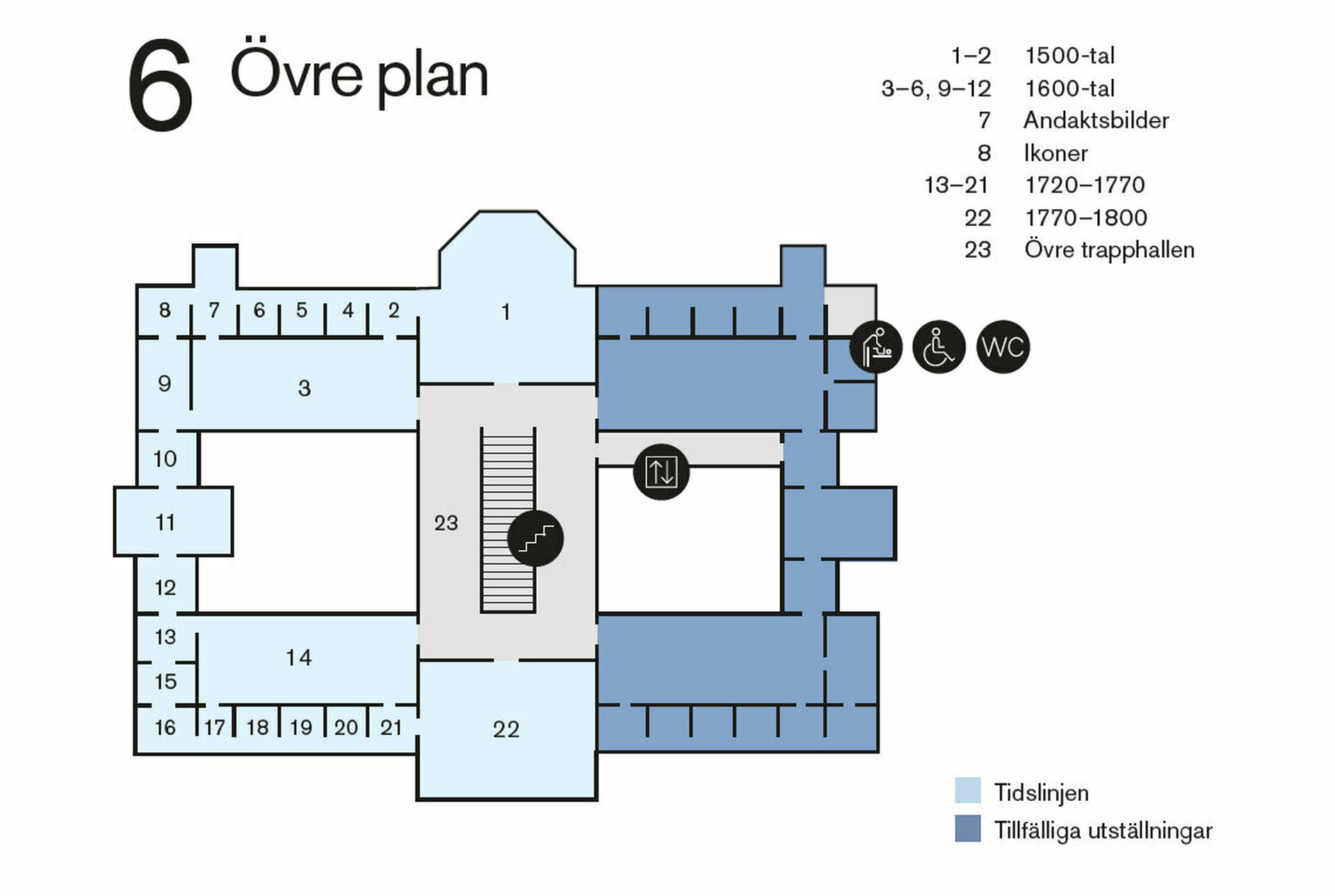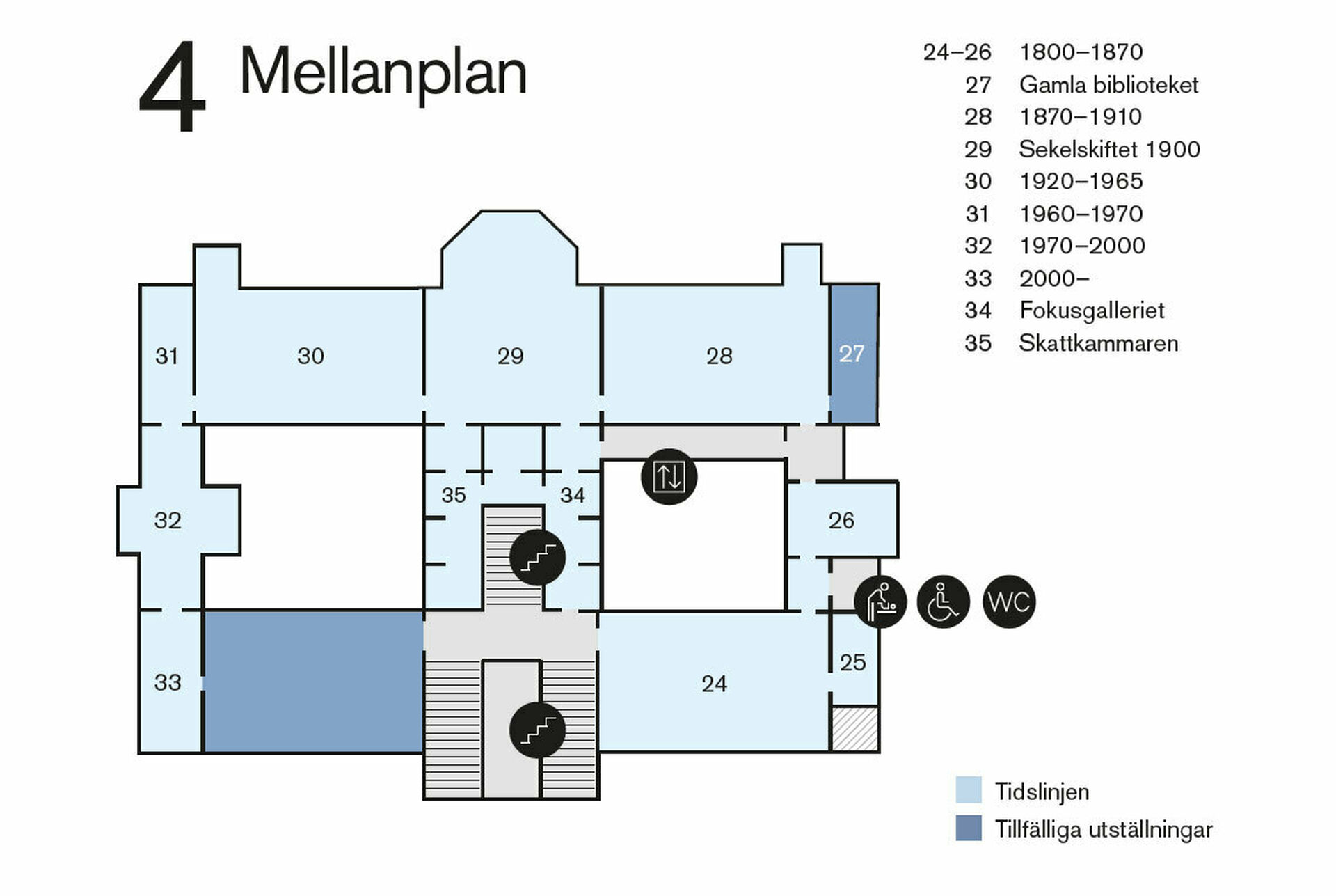 Här finner du kartbilder med numrering av salarna i museet samt alla salar listade med länkar till museets samlingsdatabas. Där får du information om vad som finns utställt i respektive sal.