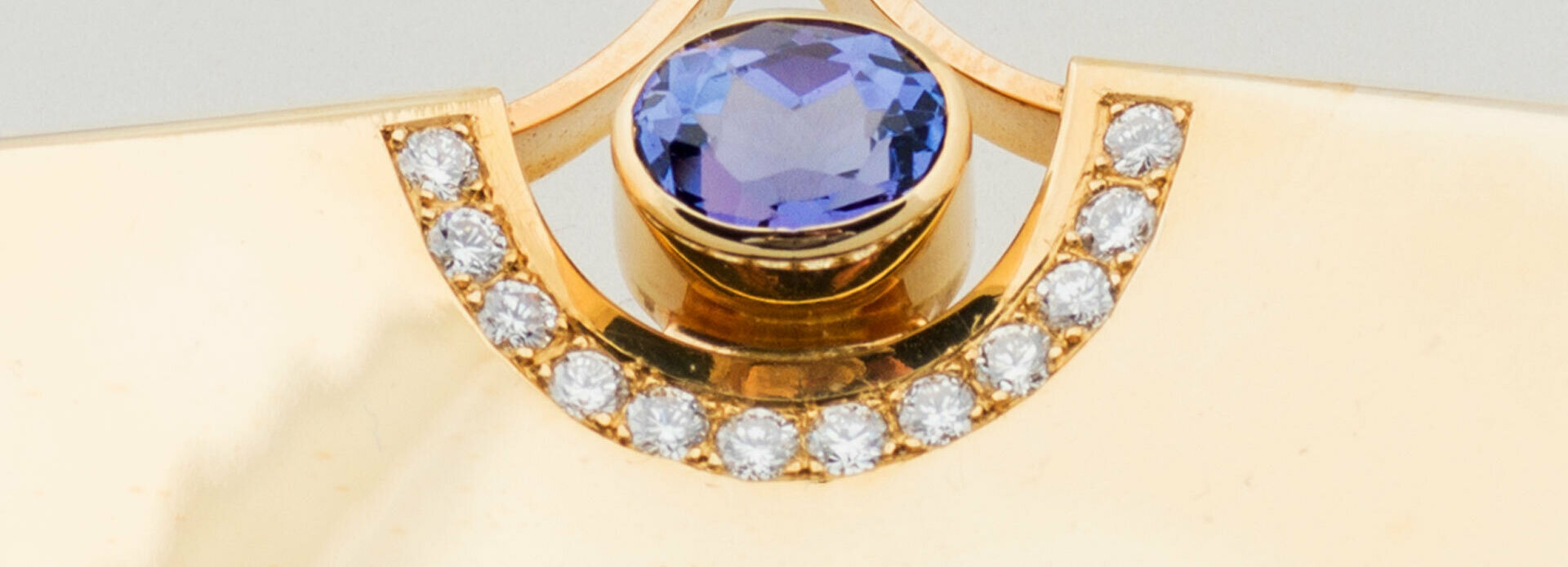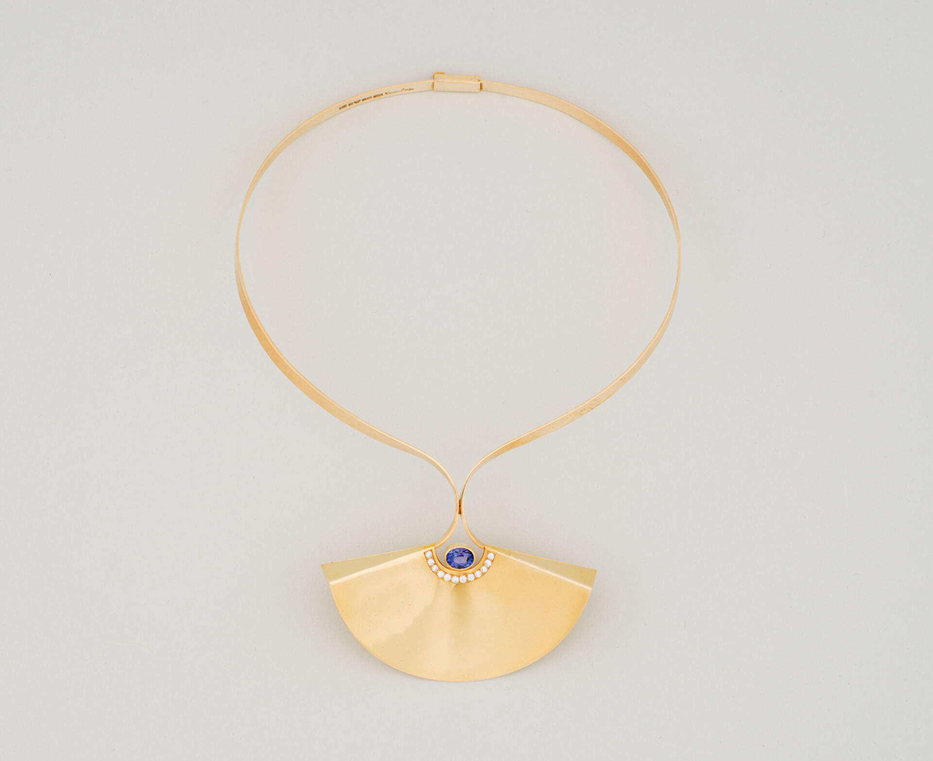 Kerstin Öhlin Lejonklou, necklace “Sahara”, 1981. Gold, tanzanite, brilliants. NMK 49/2023.