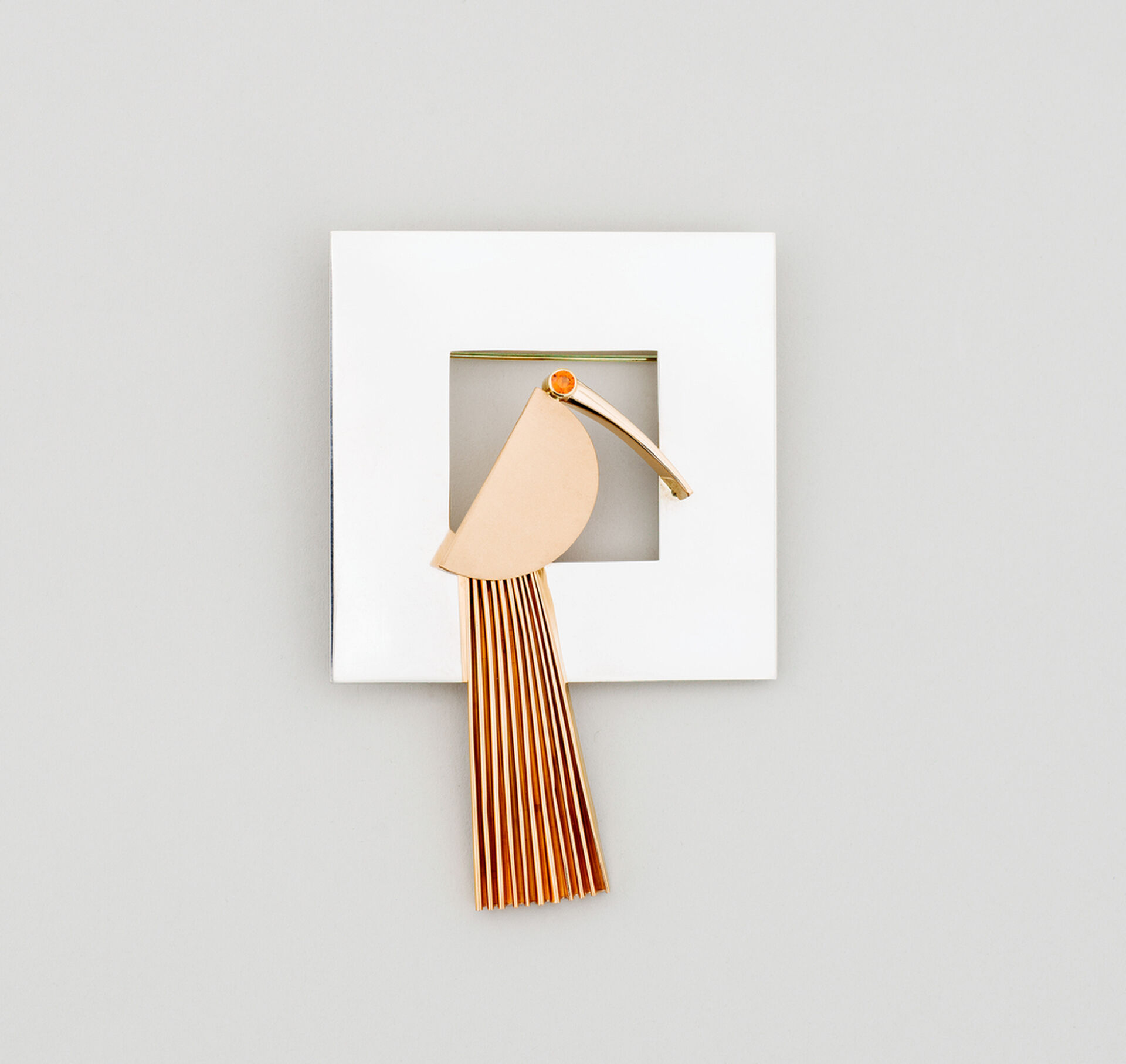 Kerstin Öhlin Lejonklou, Lena Olofsson: Brooch, 2003. Silver, gold, mandarin garnet. NMK 51/2023.