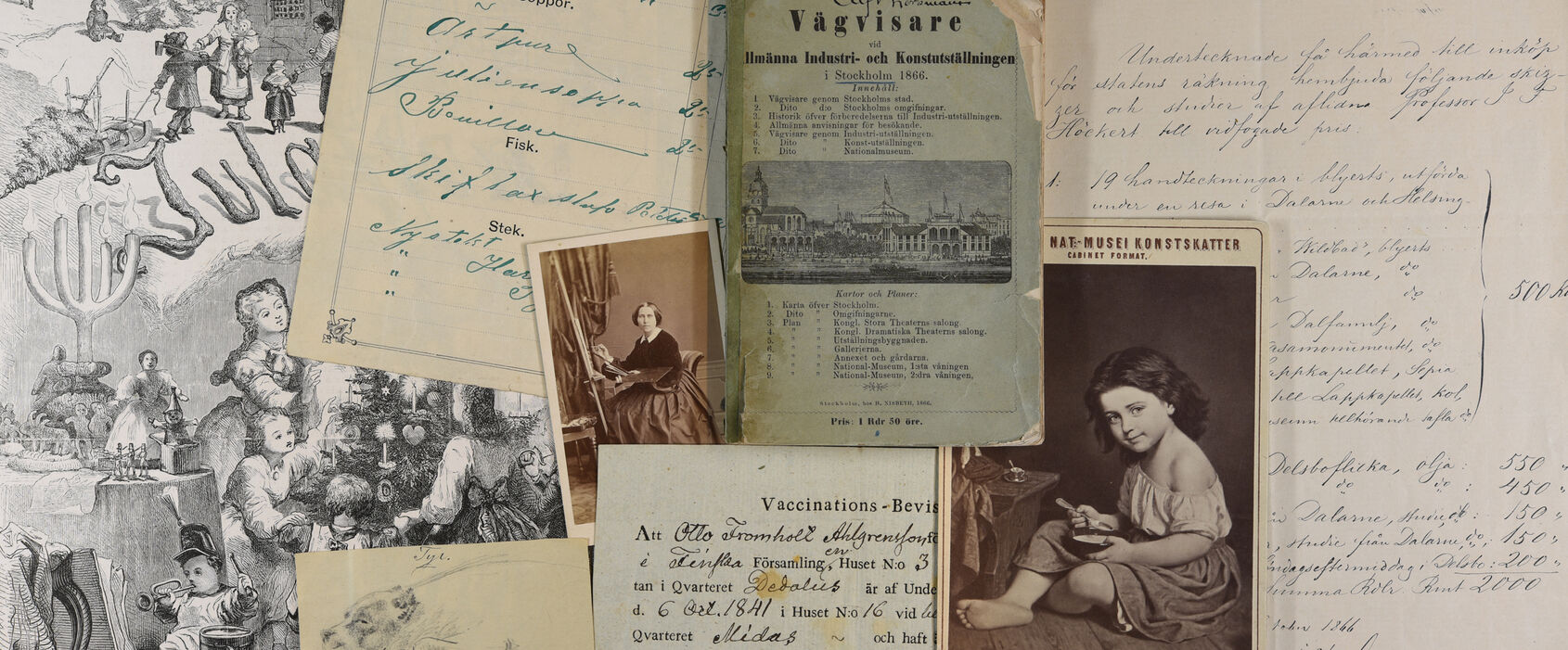 Documents from the Nationalmuseum's archives provide an insight into the art scene and the daily life of the artists and the art scene in the second half of the 19th century. and the spread of art in the late 19th century. Examples of cartes de visite show that photography was used as a marketing tool and opened up new career opportunities for women