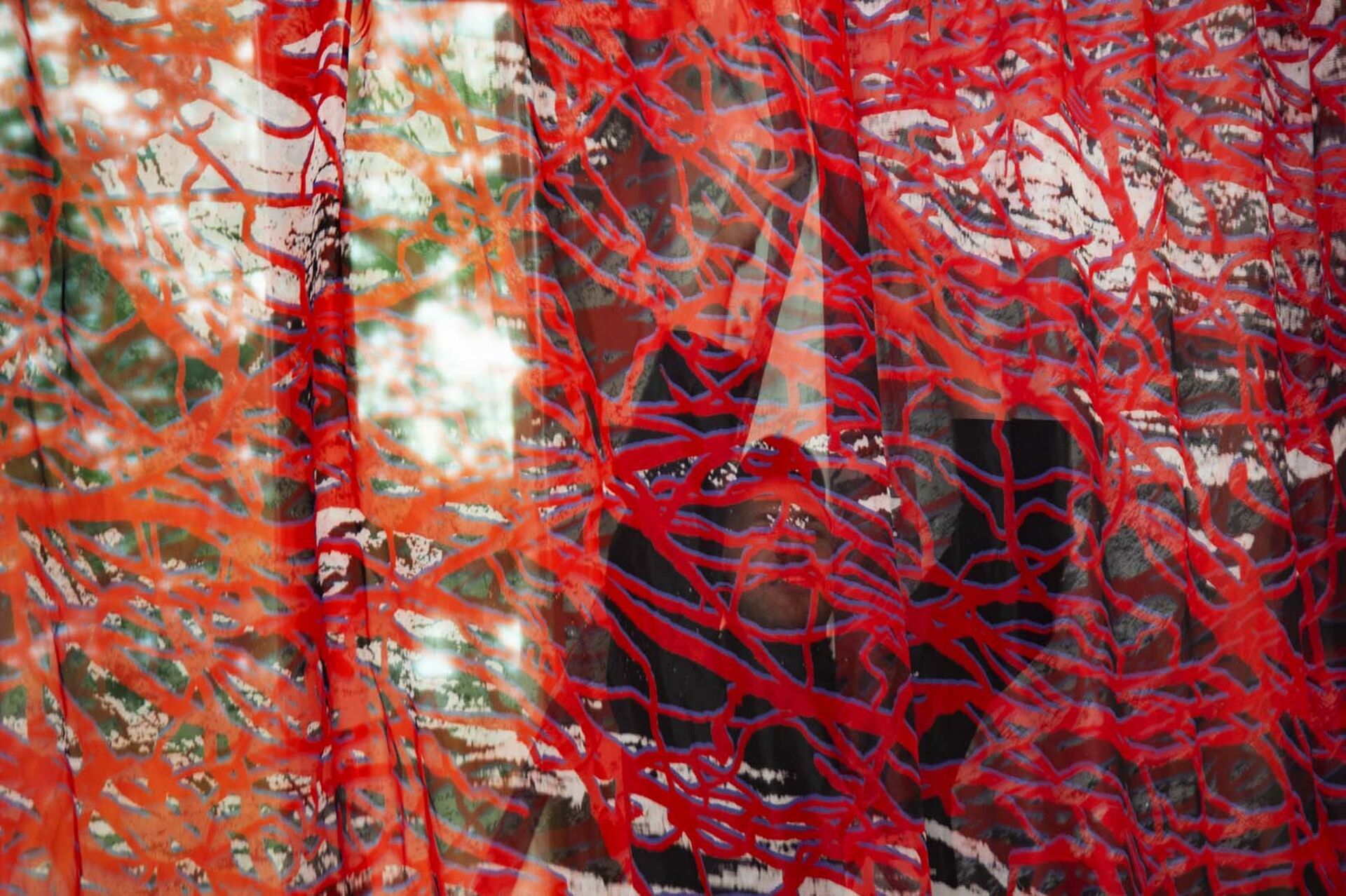 For the pattern Martin Bergström sought inspiration in the bloodstream and metabolism of the human body. From a number of sketches he chose different details of which he created a pattern in the computer. With the digital printing technique it is possible, for a reasonable cost, to print unique patterns on large surfaces without being forced to repeat it.