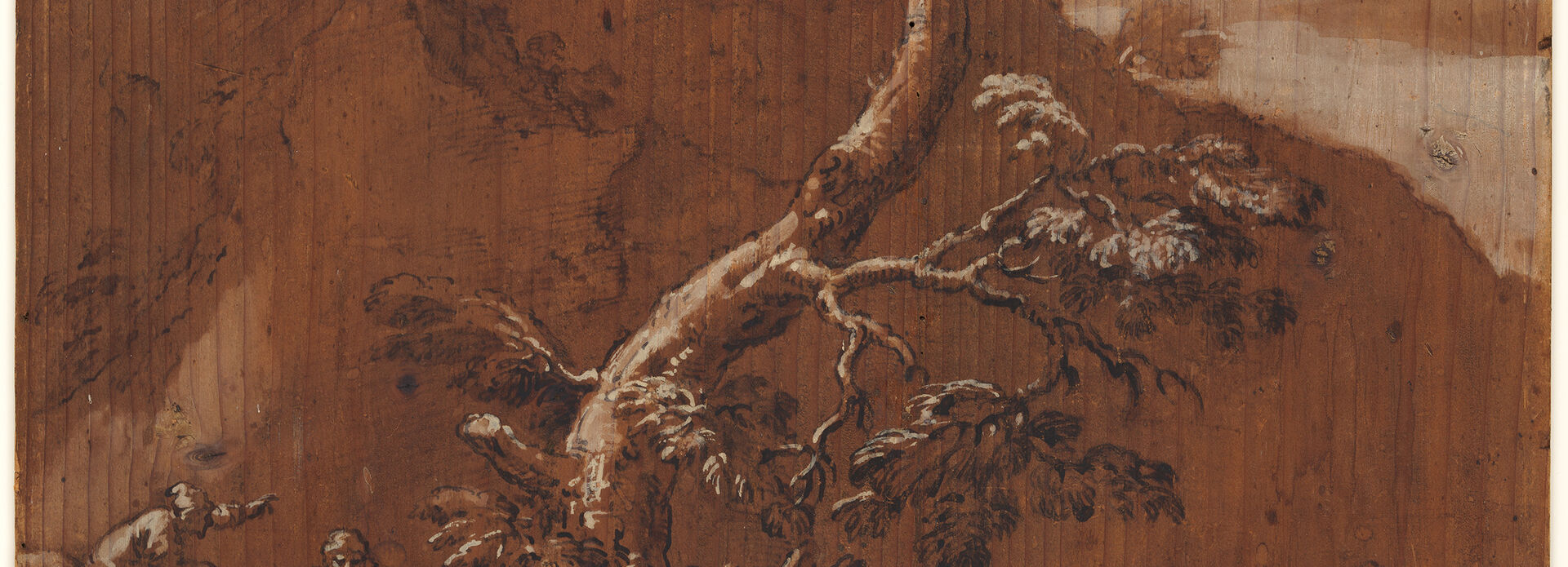 Salvator Rosa’s panel drawings constitute a unique body of work with specific qualities that provide an interesting comparison to the remainder of his artistic production. Frequently, the panels used for the drawings were retrieved from wooden crates. It is also possible in some cases that Rosa made drawings to decorate the crates prior to their use, for example, in transporting artworks to his friend and benefactor Giovanni Batista Ricciardi. Earlier works of this type include Nationalmuseum’s The Abandoned Oedipus (NM 6839) and The Death of Empedocles, part of the Pitti Palace collection in Florence. The Oedipus motif can also be found in an engraving by the artist similar to the named drawing, while that of Empedocles can likewise also be found in a painting. Even so, both drawings appear to be fully conceived works in their own right — as is the recently acquired work. It is possible that these drawings originally served as conversation pieces intended to stimulate intellectual exchange with Ricciardi. Given that the drawings are rendered on a surface traditionally used for painting, works such as these have often been challenging to group in traditional categories. The dimensions of the current work match closely those of previously known works from this group.