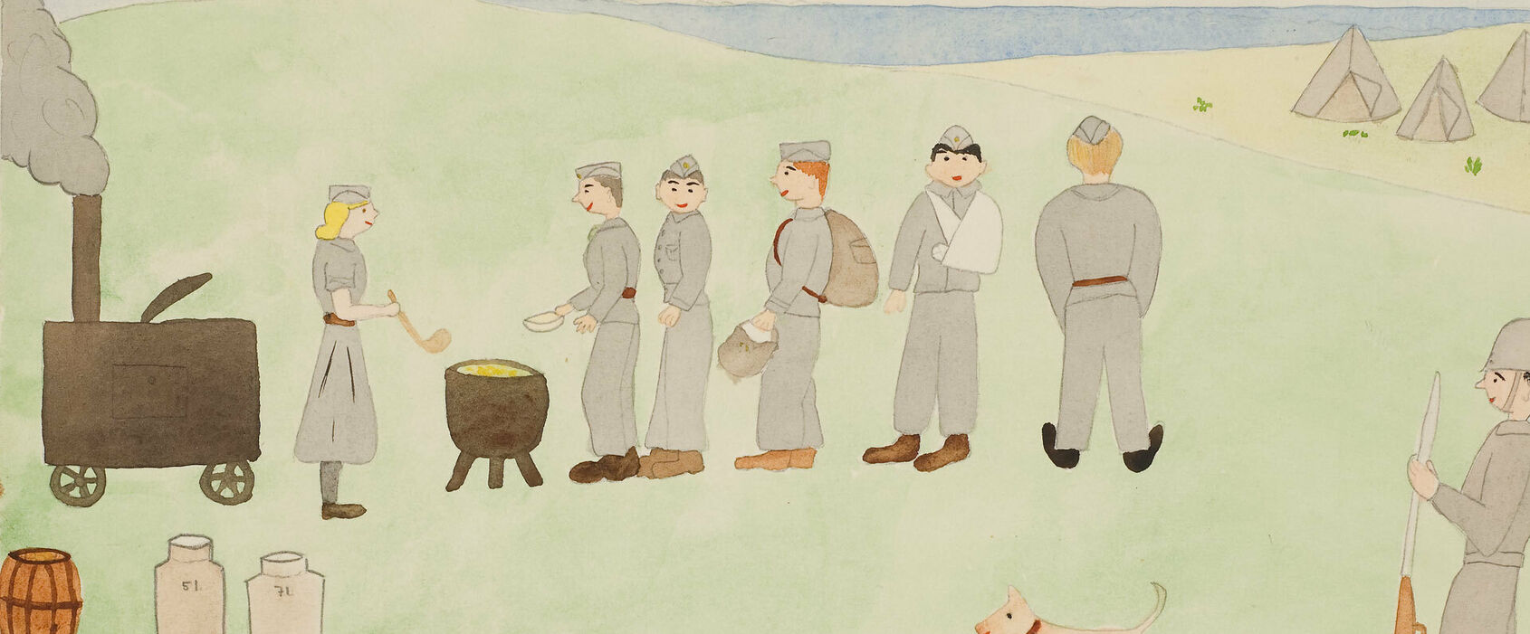 Many of the images are characterized by the then ongoing Second World War, but there are also drawings that show a happier everyday life with motifs from school and leisure activities.