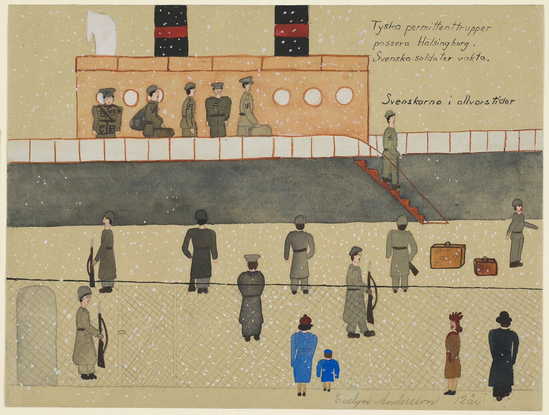 The Nationalmuseum has a unique collection of children’s drawings from around the Second World War. It consists of entries for a drawing competition launched by the weekly magazine Folket i Bild in 1938 and shown at the Museum every year from 1940 to 1957. The competition was open for primary and secondary school pupils aged six to fifteen and had a new theme each year.