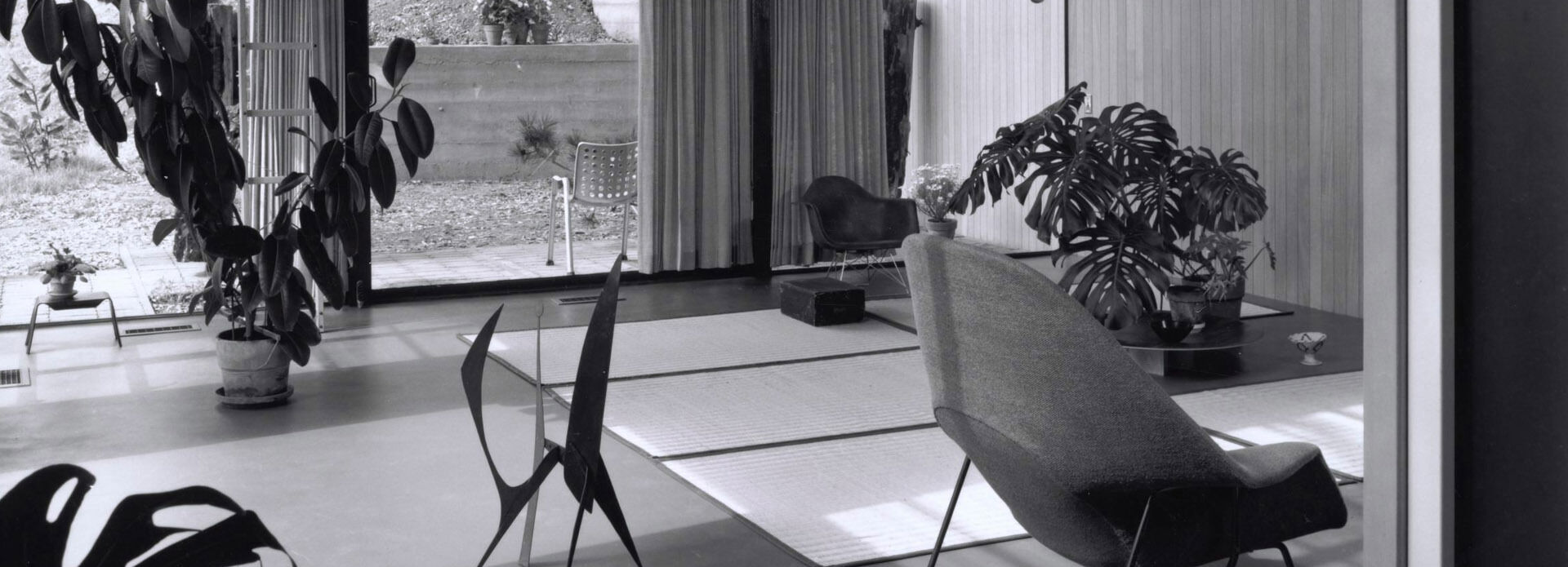 The image above: Interior of the Eames house, Los Angeles. Photo: Julius Shulman, 1950, the Getty Research Institute.