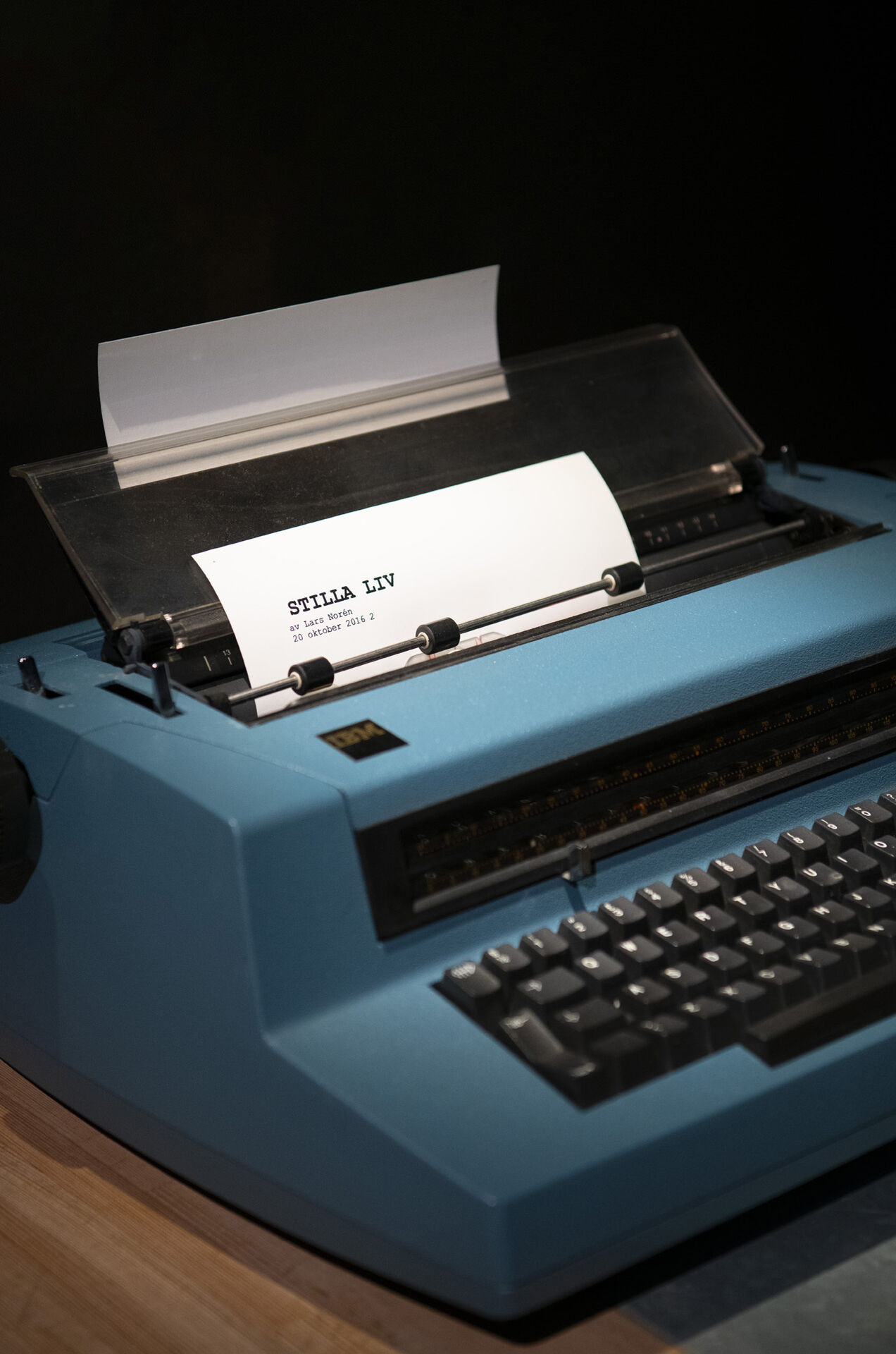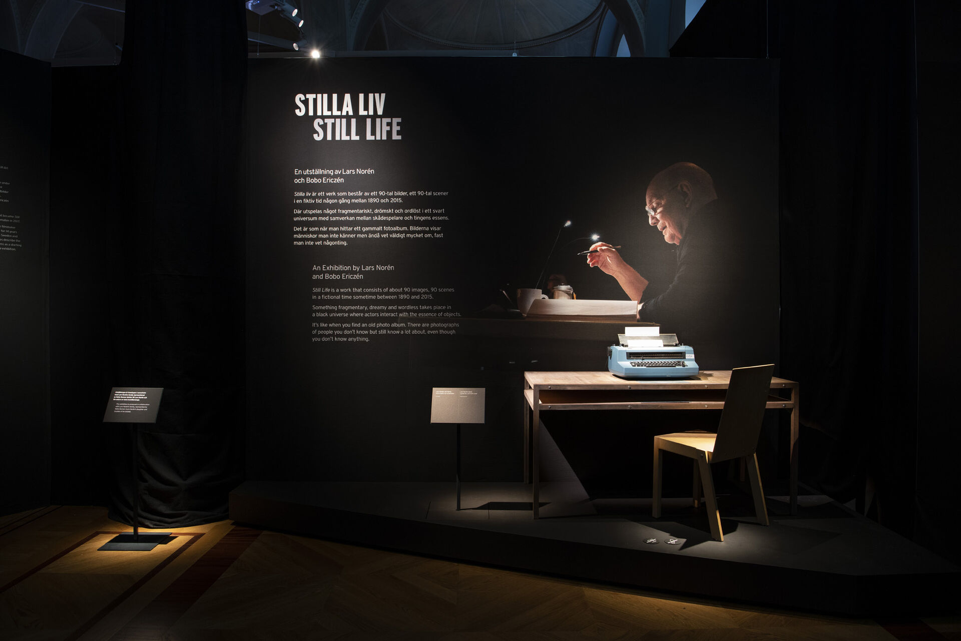 Still Life was an exhibition based on the work, with the same title, written by Lars Norén and staged at the Royal Dramatic Theatre, Stockholm, in 2017. The work consists of some 90 images, some 90 scenes without a line of dialogue from beginning to end. In a fictional time somewhere between 1890 and 2015, something fragmentary and dreamlike plays out, without sound or words. In a black universe with a white door standing ajar, actors interact with the essence of things.