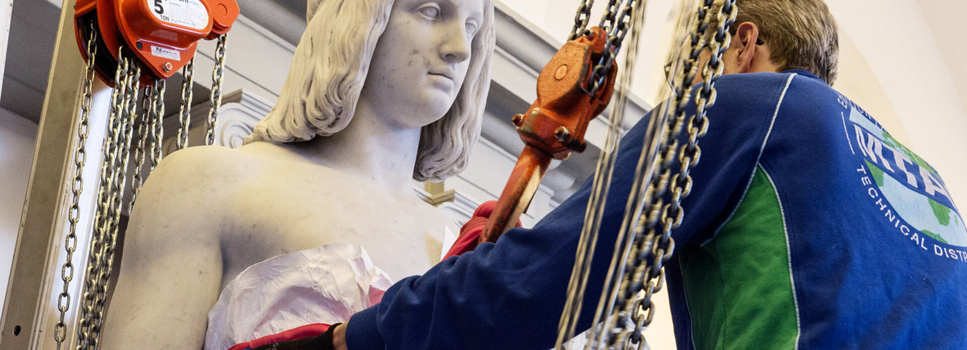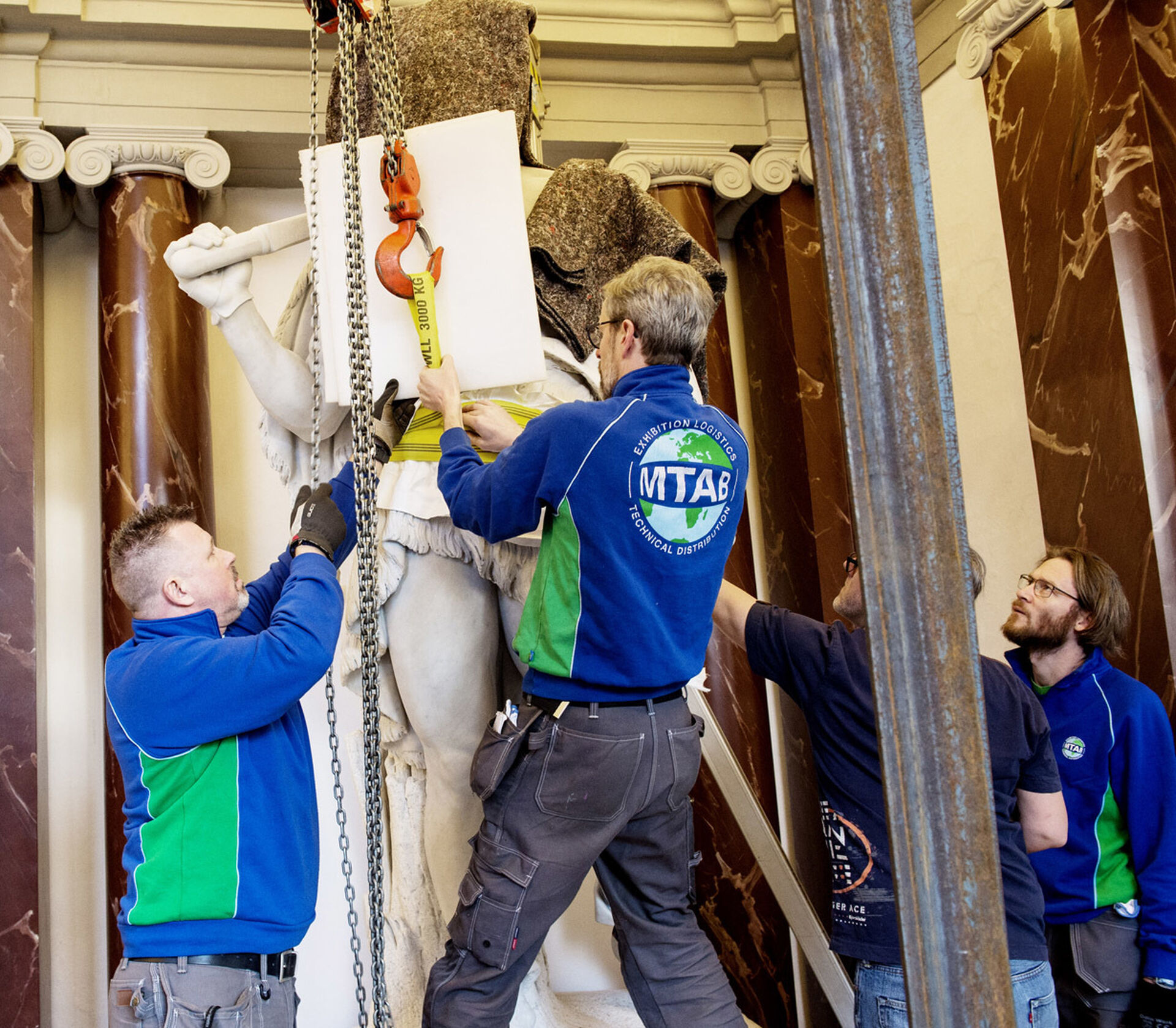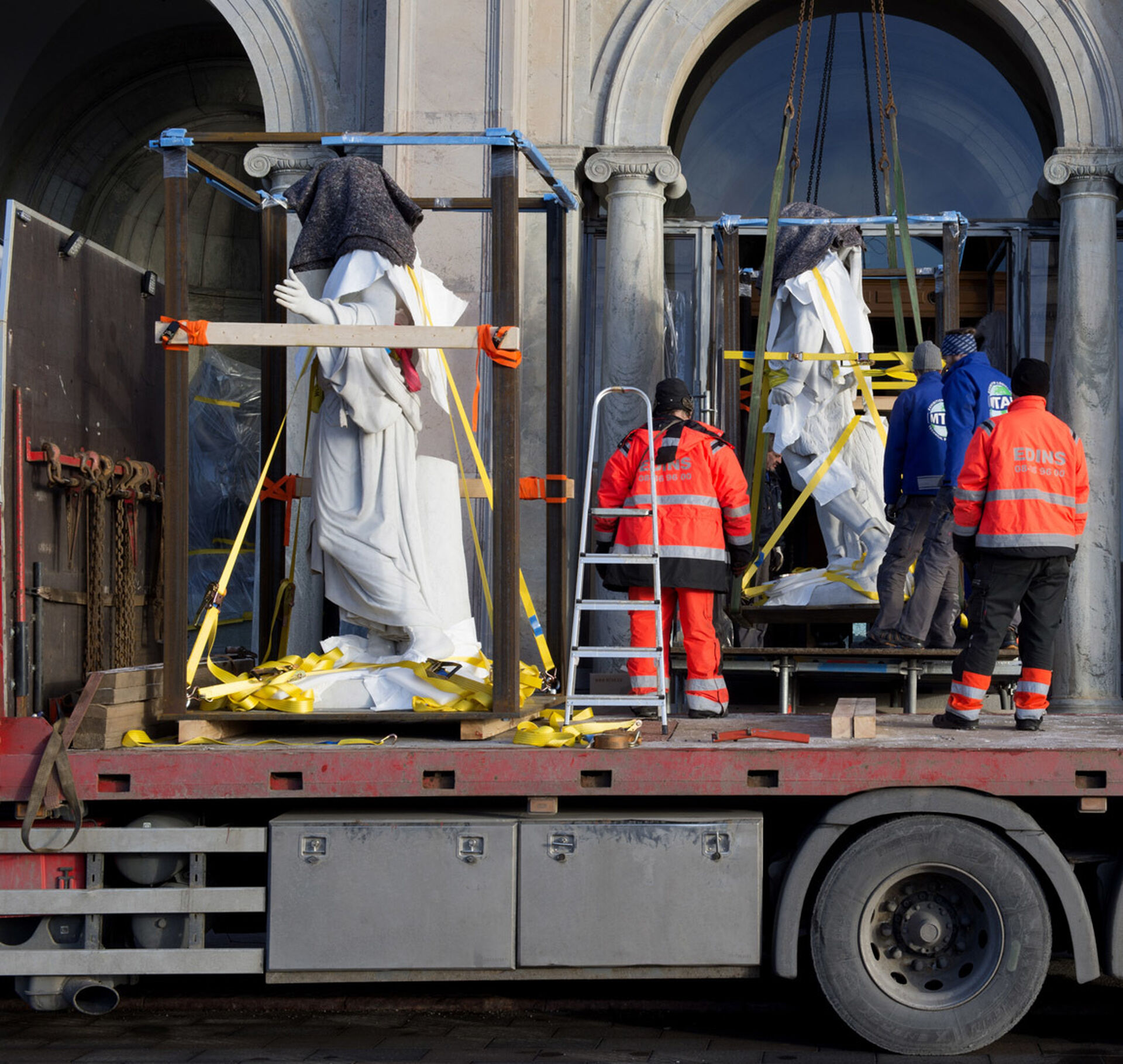 På öppet flak anlände två stora paket till Nationalmuseums stora entré. När de skyddande presenningarna avlägsnades kunde de nyfikna som samlats på kajen se den nästan tre meter höga skulpturen Tor och den något lägre Balder stående i sina speciella lyftbara stålburar. Skulpturerna väger tre respektive två ton.