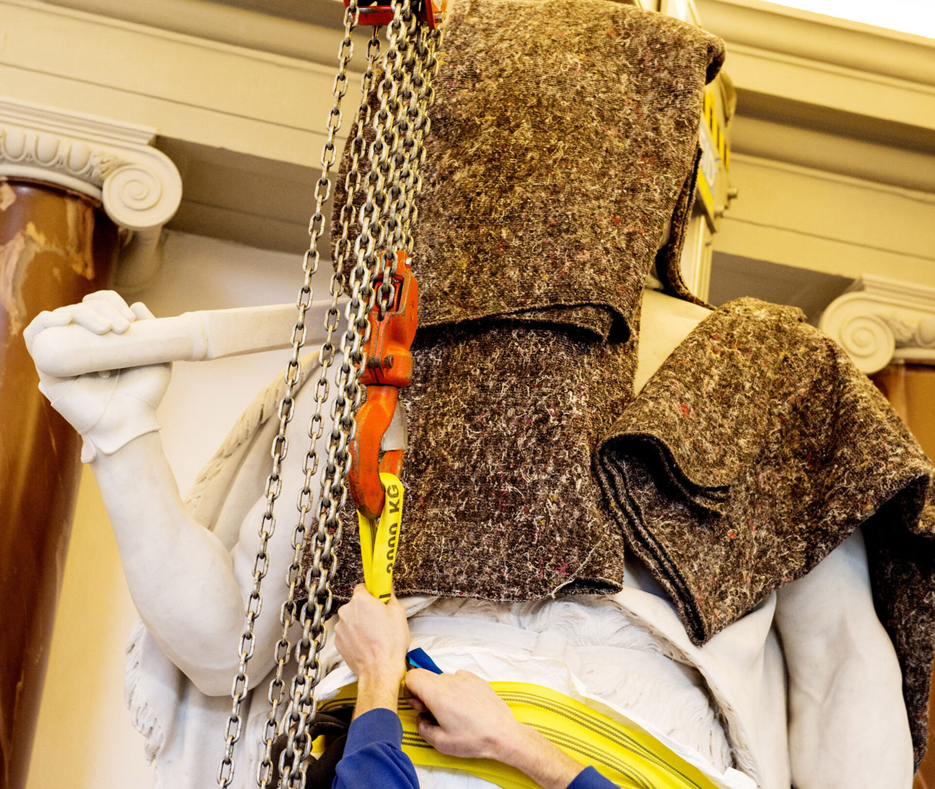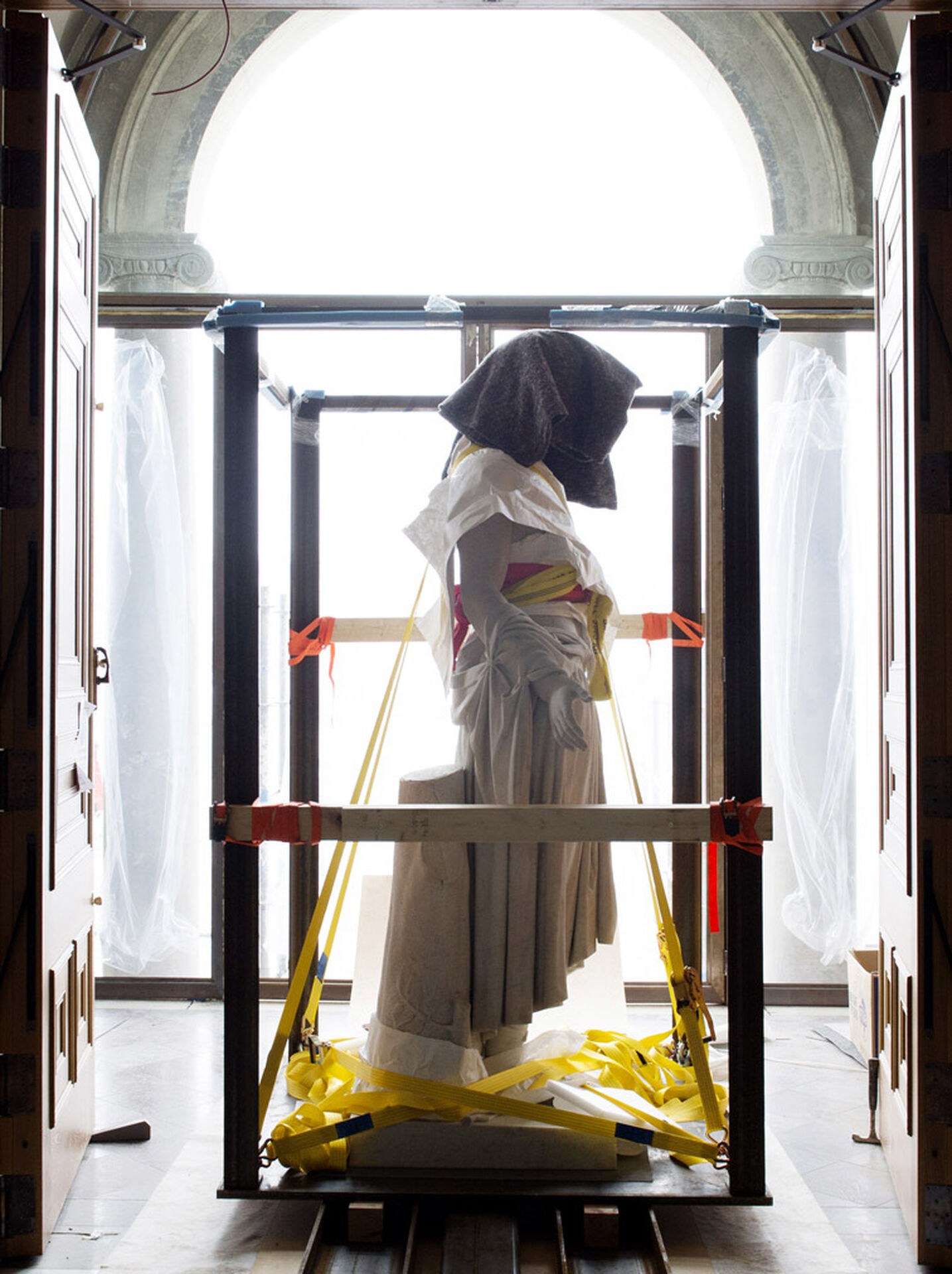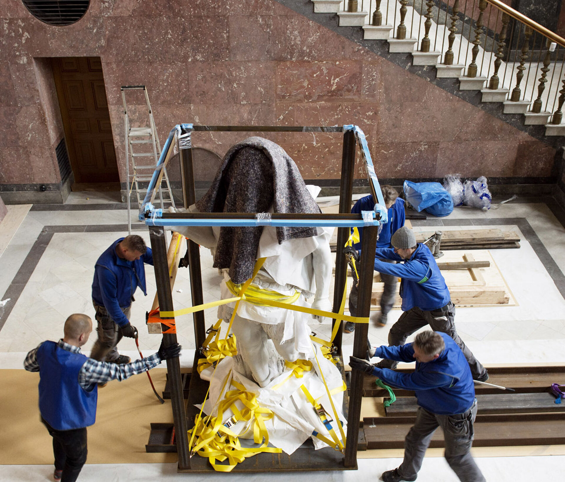 Under onsdagsförmiddagen, 10 januari, flyttades två av Bengt Erland Fogelbergs skulpturer av fornnordiska gudar tillbaka in i museibyggnaden efter att ha varit i exil i 58 år. Den komplicerade flytten har förberetts i veckor.