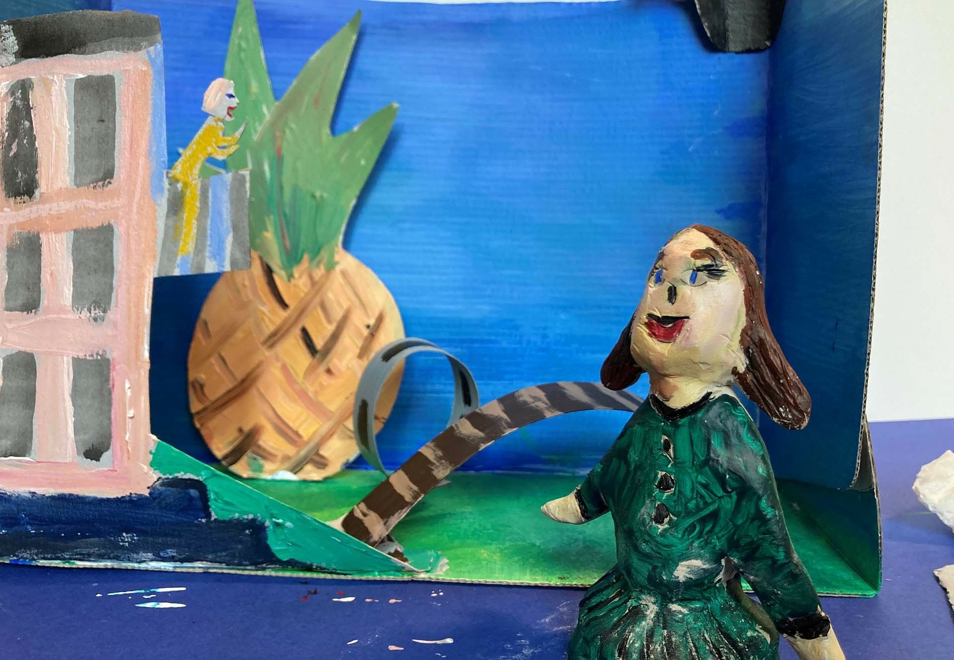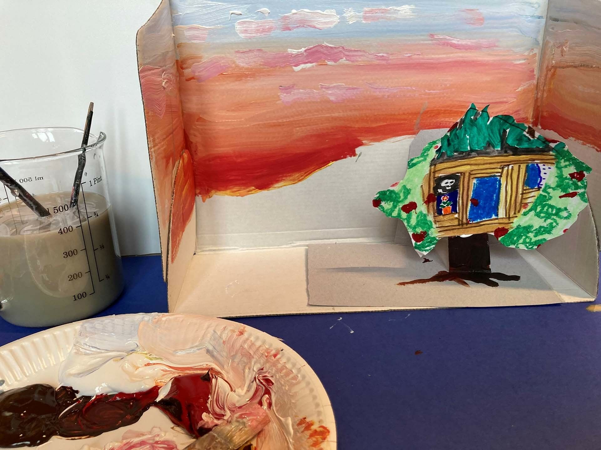 Gör en modell av en drömplats med hjälp av kartonger och färg. Om du har tillgång till lera (se ateljéns tips på trolldeg) kan du forma figurer till din plats också.