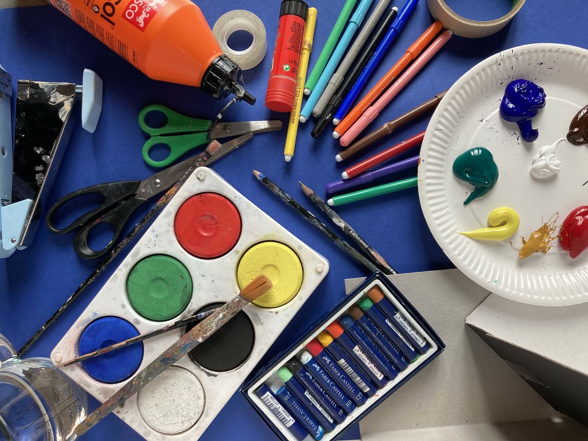 - färg, kritor, tuschpennor, vattenfärg eller akrylfärg till exempel