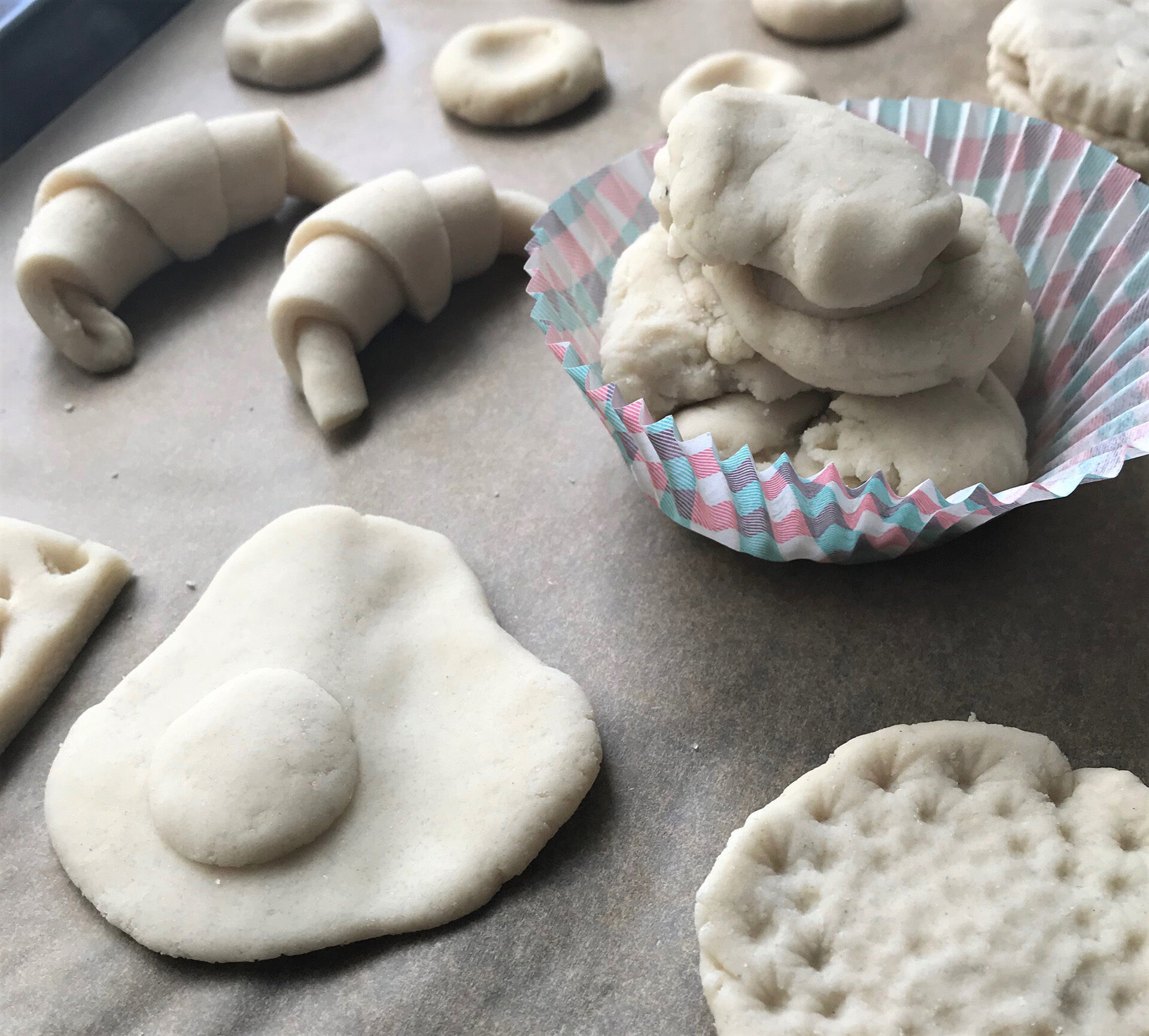 - Forma genom att dega, rulla, korva, skära, baka, bygga. Låna gärna lite olika köksredskap som exempelvis vitlökspress, gaffel eller kakformar för att göra avtryck och arbeta fram en äkta känsla till din skulptur!