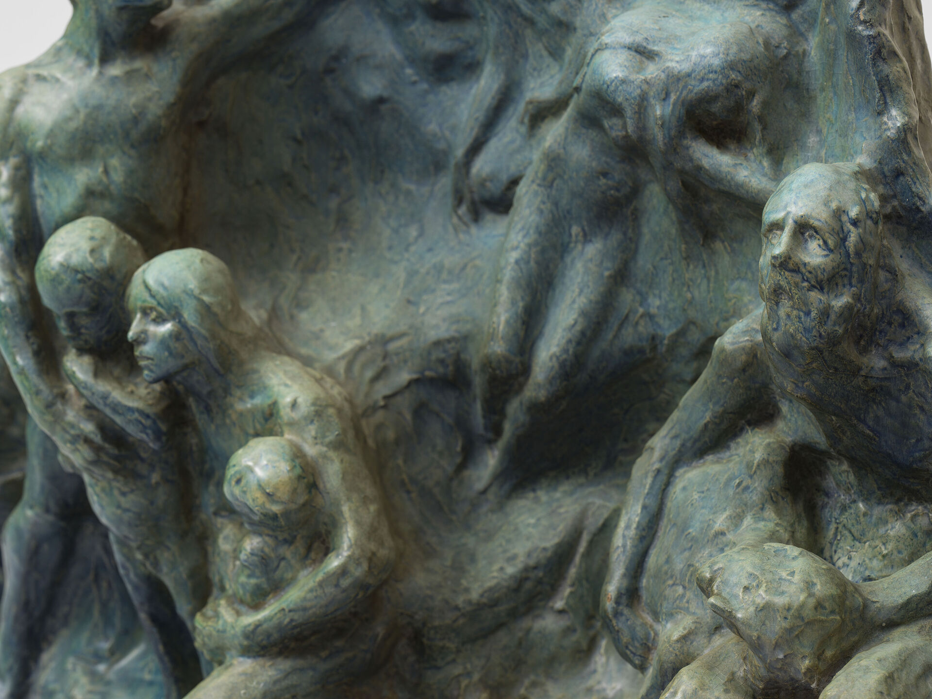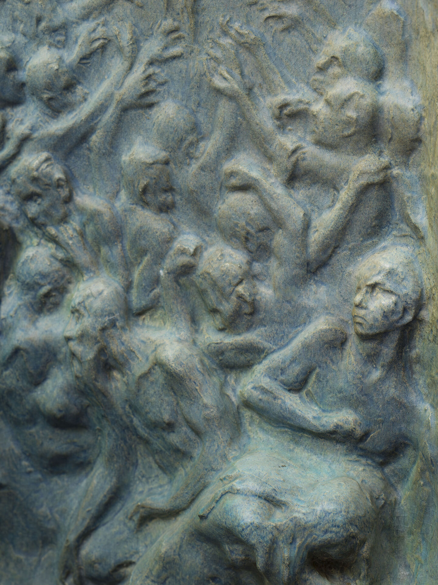 Påverkan från Rodin syns också tydligt i denna relief. Precis som i Rodins Helvetesporten består den generella kompositionen av ett virrvarr av mänskliga kroppar i hög- och lågrelief. Tyngpunkten ligger på att skapa en stämning och förmedla en känsla, vilket minspelen, gesterna och blickarna bidrar till. Ambitionen hos skulptörer att skapa monumentala verk kring stora, universella ämnen låg i tiden.