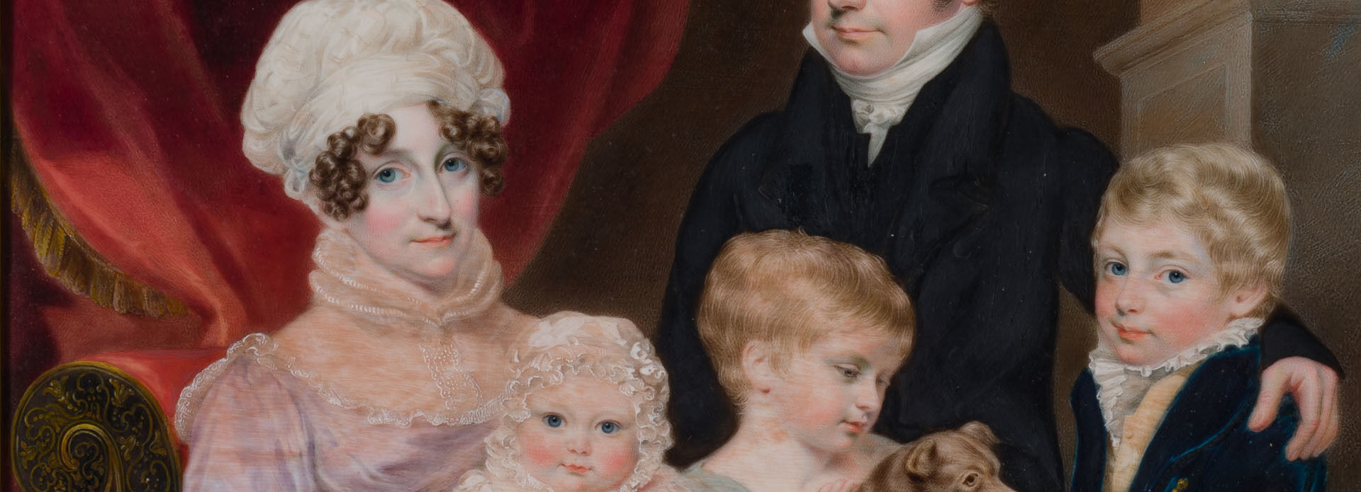 John Cox Dillman Engleheart (1784–1862) var nevö och elev till den mer berömde George Engleheart. Han arbetade först för sin onkel och livnärde sig på att kopiera dennes arbeten. I motsats till George Englehearts utpräglat lineära stil, som distanserade porträttminiatyren från oljemåleriet, utvecklade han en mer förfinad teknik där de synliga penseldragen tonades ned och koloriten blev varmare. Det nyligen förvärvade grupporträttet, som troligen återger en av konstnärens svågrar med familj, vittnar om John Englehearts eget finmåleri. Här har konstnären lagt ned lika mycket energi på arbetet med modellernas ansikten som inläggningarna i kanapén. Den stora porträttminiatyren av familjen Barker, utförd på 1820-talet, visar att konstarten vid denna tidpunkt hade ambitionen att mäta sig med oljemåleriet i både format och yta.