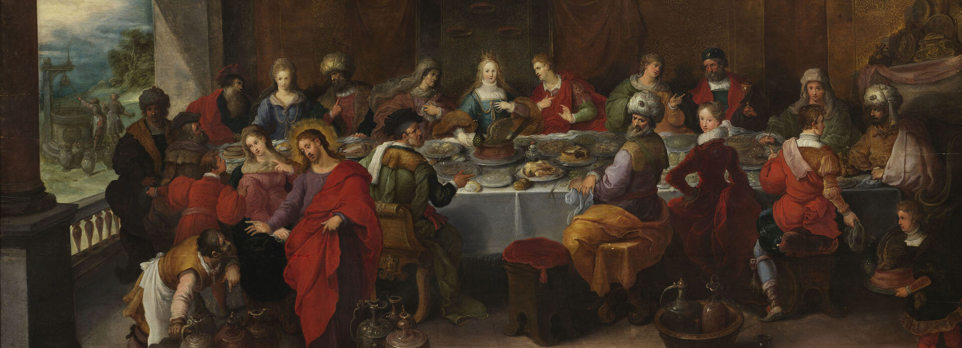 Frans Francken d.y. (1581–1642) tillhörde en stor och välkänd konstnärsfamilj vars medlemmar var verksamma i Antwerpen i flera generationer. Han specialiserade sig på det småfiguriga och färgrika kabinettmåleriet. Bröllopet i Kana, från ca 1618/20, skildrar berättelsen ur Johannesevangeliet om miraklet vid bröllopet i Kana, ett populärt motiv i Francken-ateljén. Brudparet sitter bland bröllopsgästerna under en baldakin i fondens mitt. I förgrunden till vänster bland vinkrukorna står Jesus klädd i en cinnoberröd mantel i färd med att omvandla vatten till vin. På pallen Jesus lämnat tom mittemot brudparet har konstnären tecknat sin signatur. Målningens detaljrikedom och figurerna klädda i ”orientaliska” kostymer i brokiga färger är typiska för det flamländska kabinettmåleriet. Målningen härrör från samlingarna vid Eremitaget i S:t Petersburg. Delar av dessa såldes av de sovjetryska myndigheterna i slutet av 1920-talet. Därför kunde Franckens målning senare förvärvas av den svenske ambassadören Vilhelm Assarsson (1889–1994). Genom en testamentarisk gåva kom målningen att ingå i Svenska Akademiens konstsamling, och har nu sålts till Nationalmuseum.