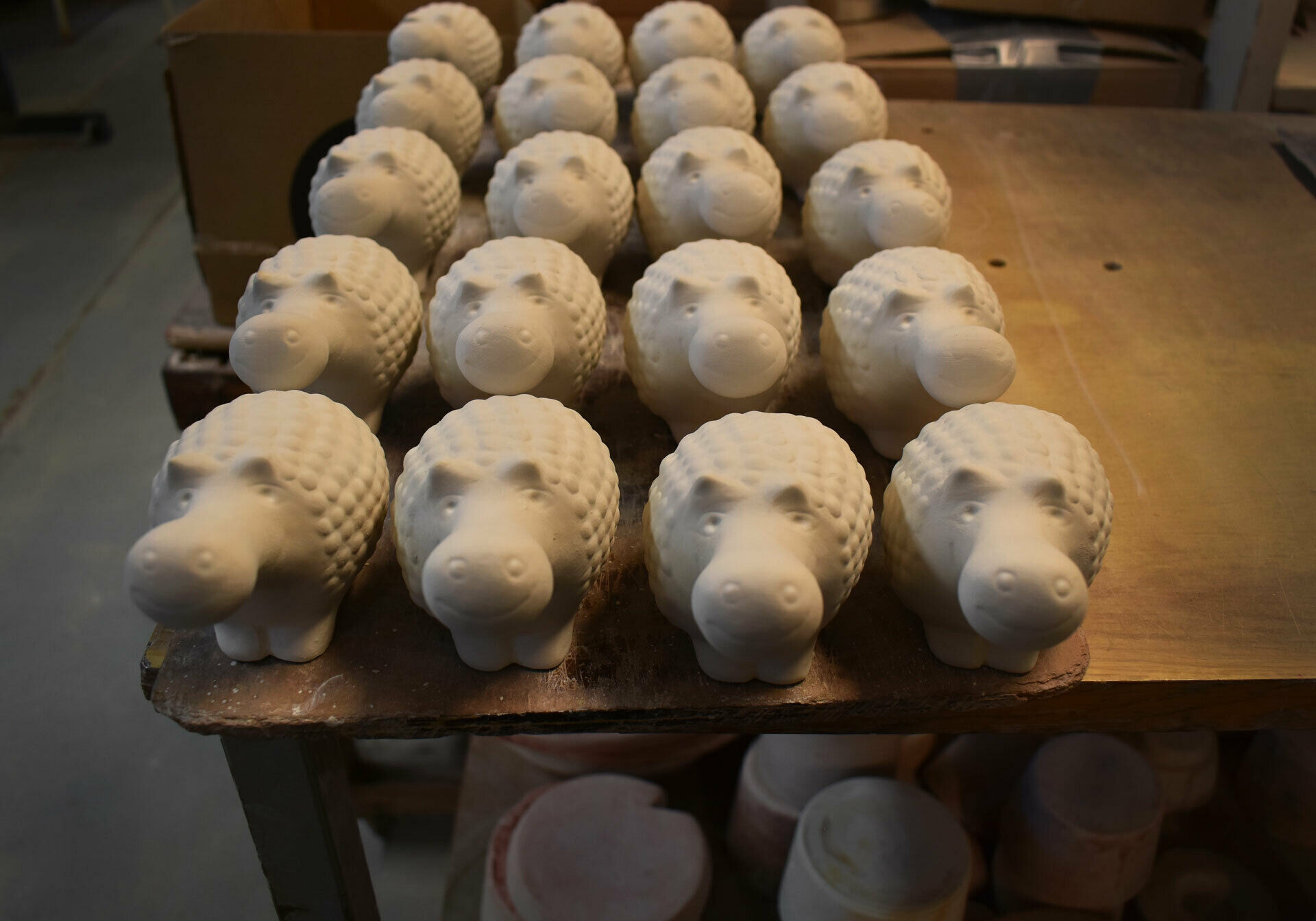 Jag tror att försäljarna på Gustavsbergs Fabriker inte riktigt trodde på min idé. Vi gjorde några glaserade prover, men de kom aldrig i produktion. Minst 20 år senare började jag leka med tanken igen och gjorde en rad nya modeller av okända djur som jag inte visade för någon. De bodde i en gammal brödburk.