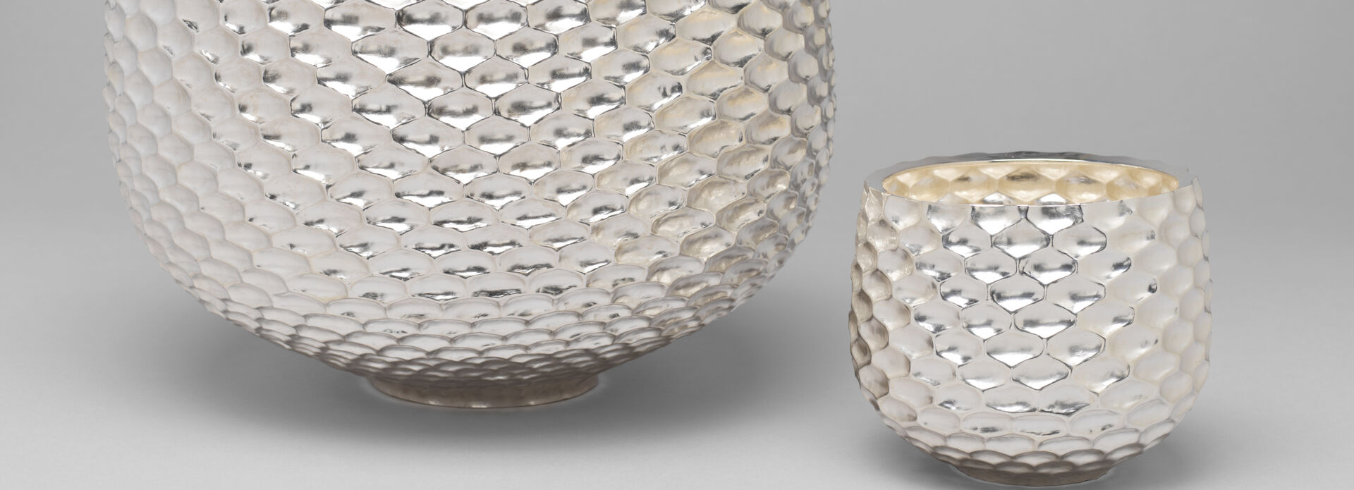 Den första gåvan som stiftelsen överlämnar till Nationalmuseum är utförd 2019 av den danske silversmeden Carsten From Andersen (f. 1946) och heter Big and Small Bowl. De två skålarna är utförda med många och omsorgsfullt placerade hammarslag. Materialet är så kallat finsilver som innehåller endast 0,1 % koppar till skillnad från sterlingsilver med 7,5 % koppar i legeringen som är det vanliga i dessa sammanhang. Finsilvret är mjukare att arbeta med och ger även visuellt en mjukare känsla. Då det innehåller mindre koppar så oxiderar det inte heller så snabbt. Den höga silverhalten påverkar å andra sidan priset och uniciteten.