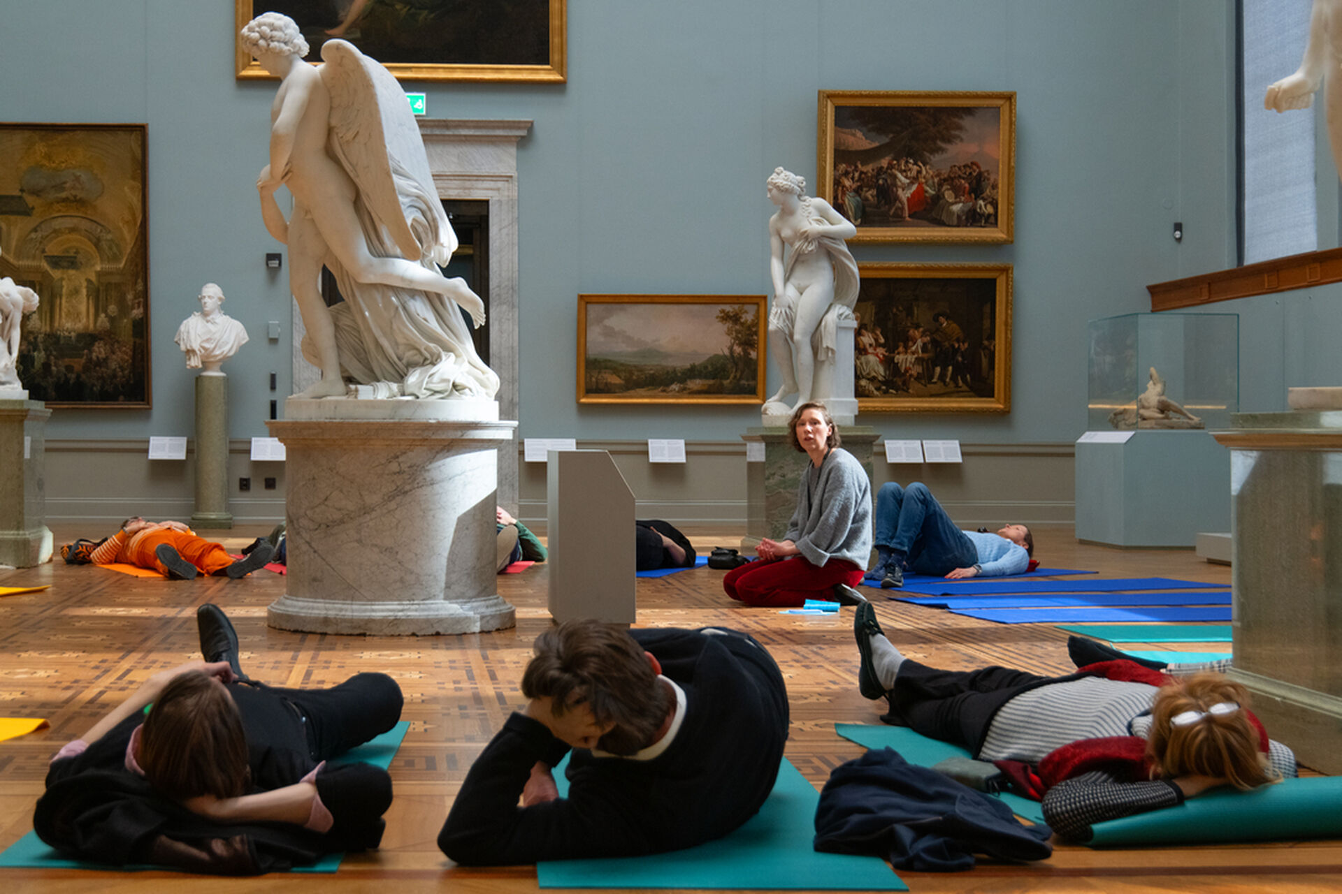 Sätt eller lägg dig ner på en mjuk yogamatta inne i utställningssalen och vila i en av den grekiska mytologins mest kända berättelser, här berättad av intendent Sara Borgegård Älgå. Fyra tillfällen under dagen, berättelsen tar ca 20 minuter.