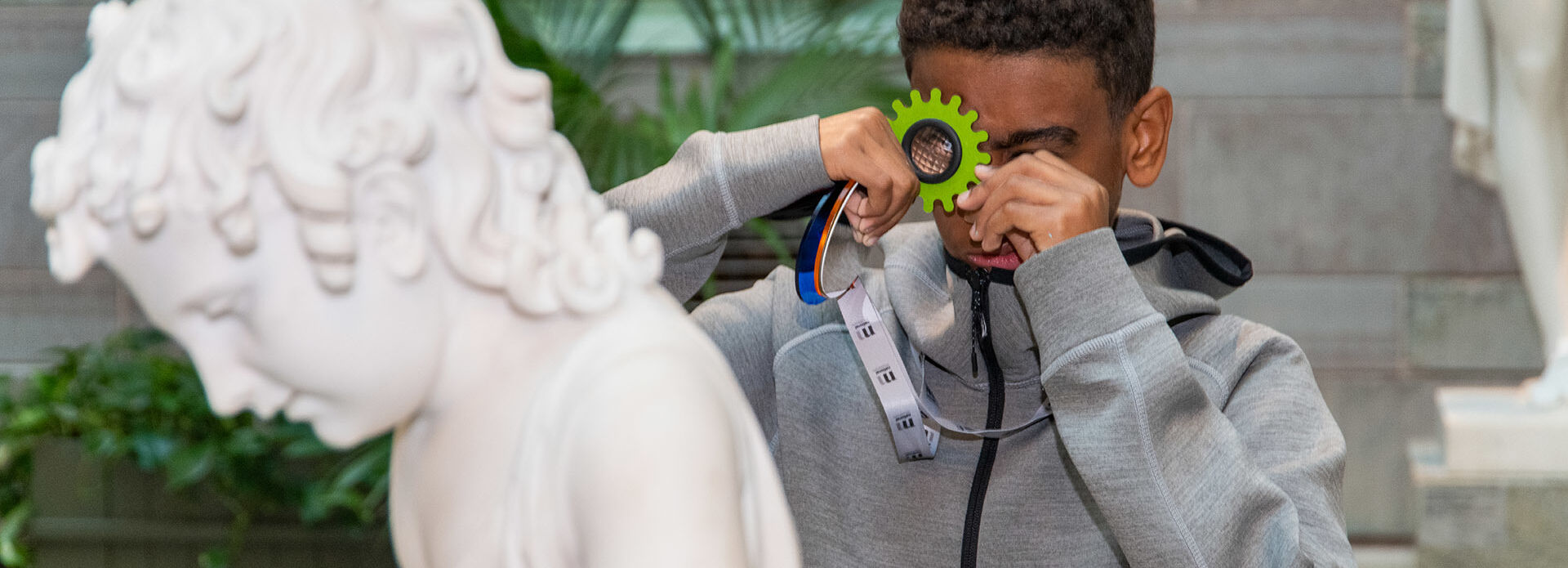 Oculus-turen är ett studiematerial för förskolan, åk 0–3 och fritids som besöker Nationalmuseum på egen hand. Här gäller det att titta noga och att se på nya sätt. Följ kartan och använd synverktygen som ni lånar i infodisken. Museet är proppfullt av konst som väntar på att upptäckas!