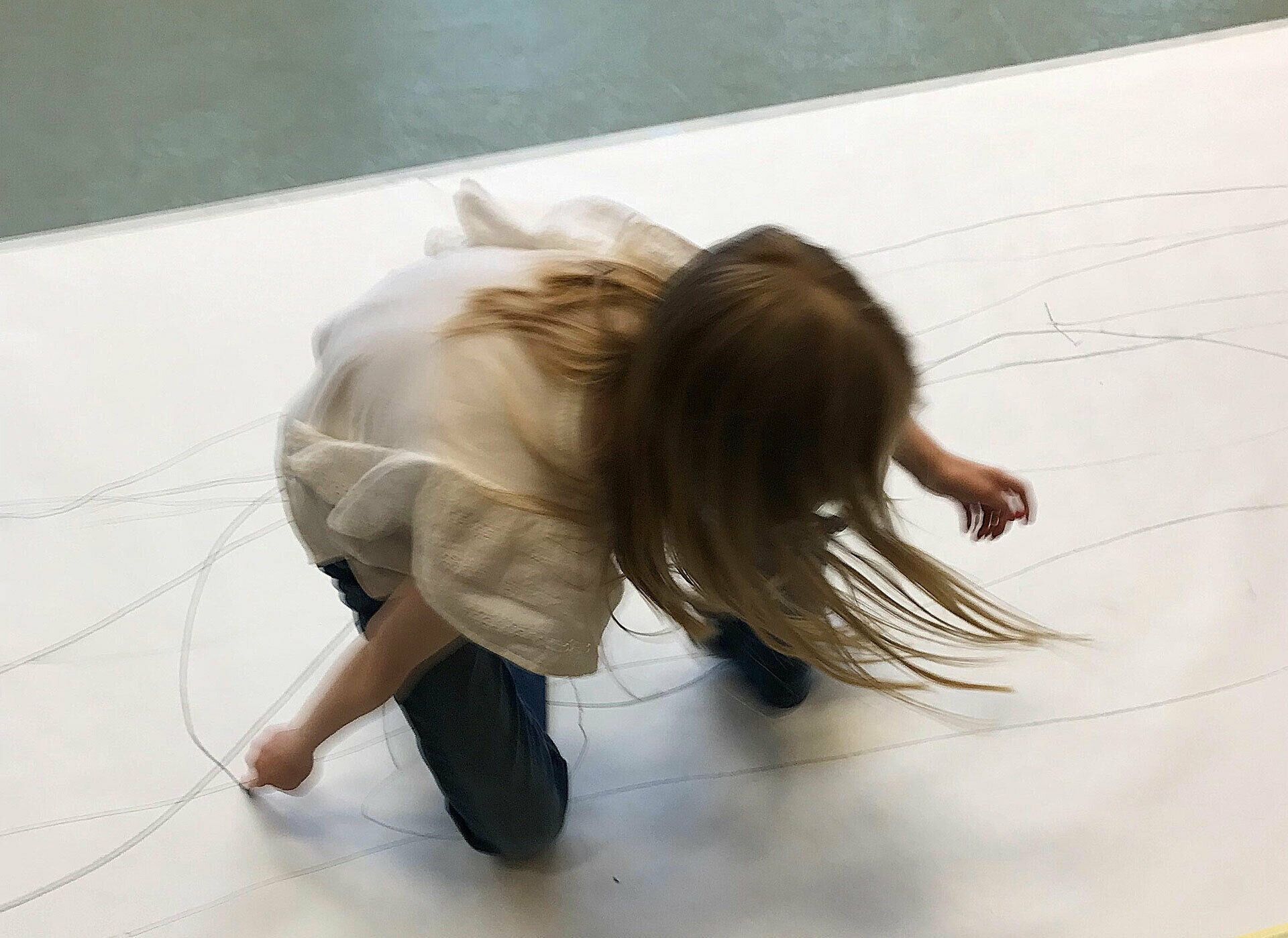 Kom och prova på teckningsgympa! Södra ljusgården förvandlas till en rolig och rörlig teckningsbana där allas rörelser lämnar spår efter sig.