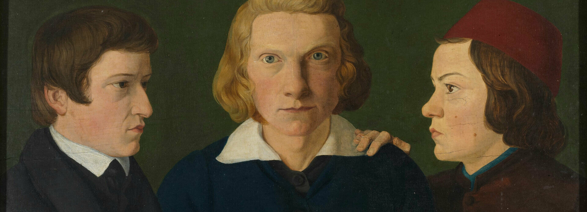 Bilden högst upp: Carl Julius Milde, Självporträtt mellan Julius Oldach och Erwin Speckter, 1826. Lübecker Museen, Museum Behnhaus Drägerhaus.