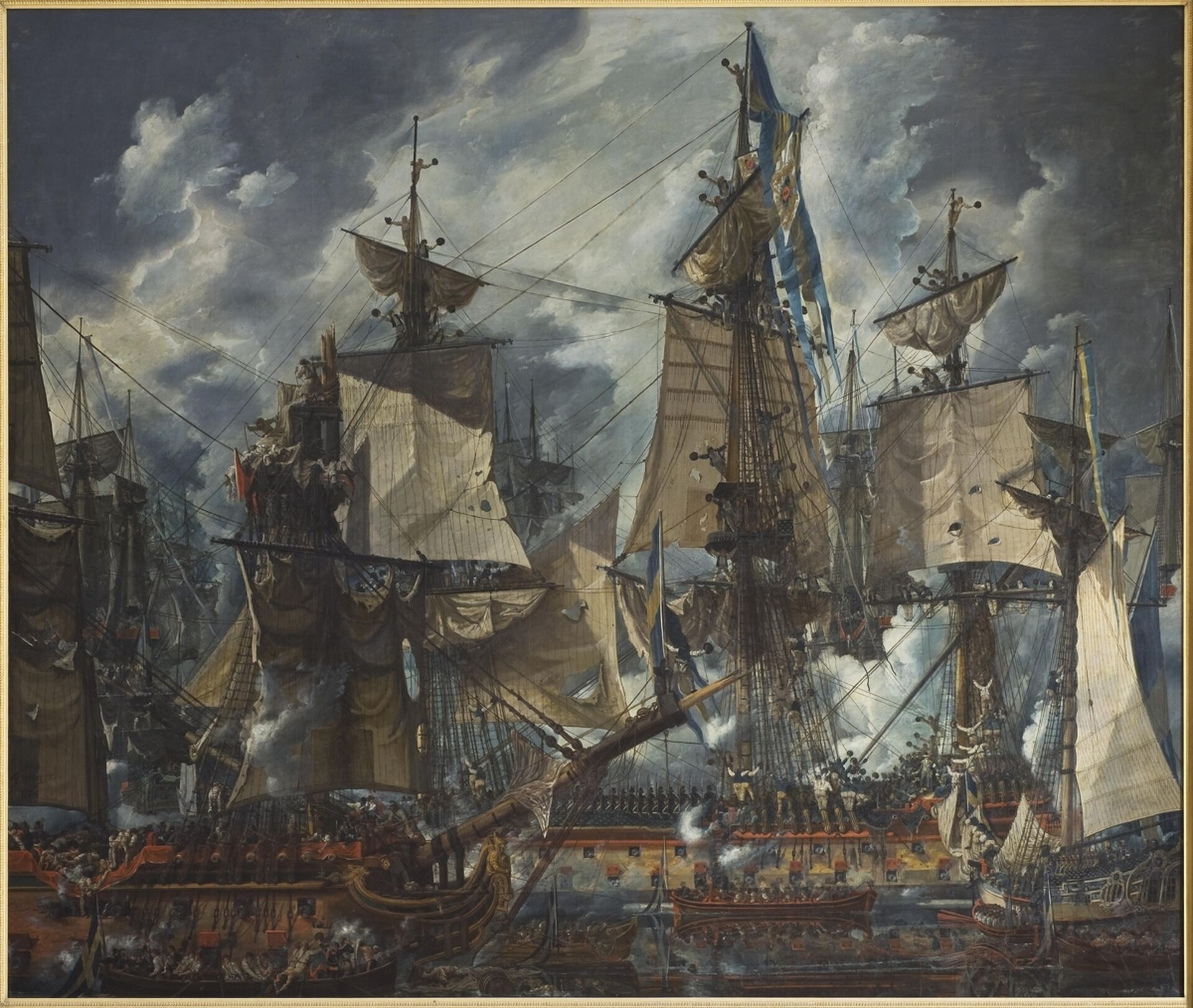 Hertig Karl (1748–1818, senare Karl XIII) fick år 1762 slottet till sin disposition. Här byggde han upp sin konstsamling. I den ingick bland annat porträtt, svenska landskap och verk av utländska mästare. En särskild del var de målningar med marina motiv, som anknöt till Karls roll som storamiral. Under sin äldre brors, Gustav III:s, svensk-ryska krig 1788–90 deltog Karl i strider i Finska viken. Minnet av sjöslagen manifesterades på Rosersbergs slott bland annat i Hoglandssalen, som är ett av de representativa rummen i hertig Karls stora våning. I centrum hänger Louis Jean Desprez (1743–1804) monumentala målning av chefsskeppet Gustaf III. Här framställs dock inte själva slaget, utan hyllningen av hertigen efter striden. Flottans bataljer placerades istället i det mindre förrummet till Hoglandssalen. I en serie målningar i mindre format har Johan Tietrich Schoultz (1754?–1807) skildrat dramatiska strider med krutrök och explosioner. Konstnären hade själv deltagit i sjökriget och det kom även att bli hans främsta motiv.