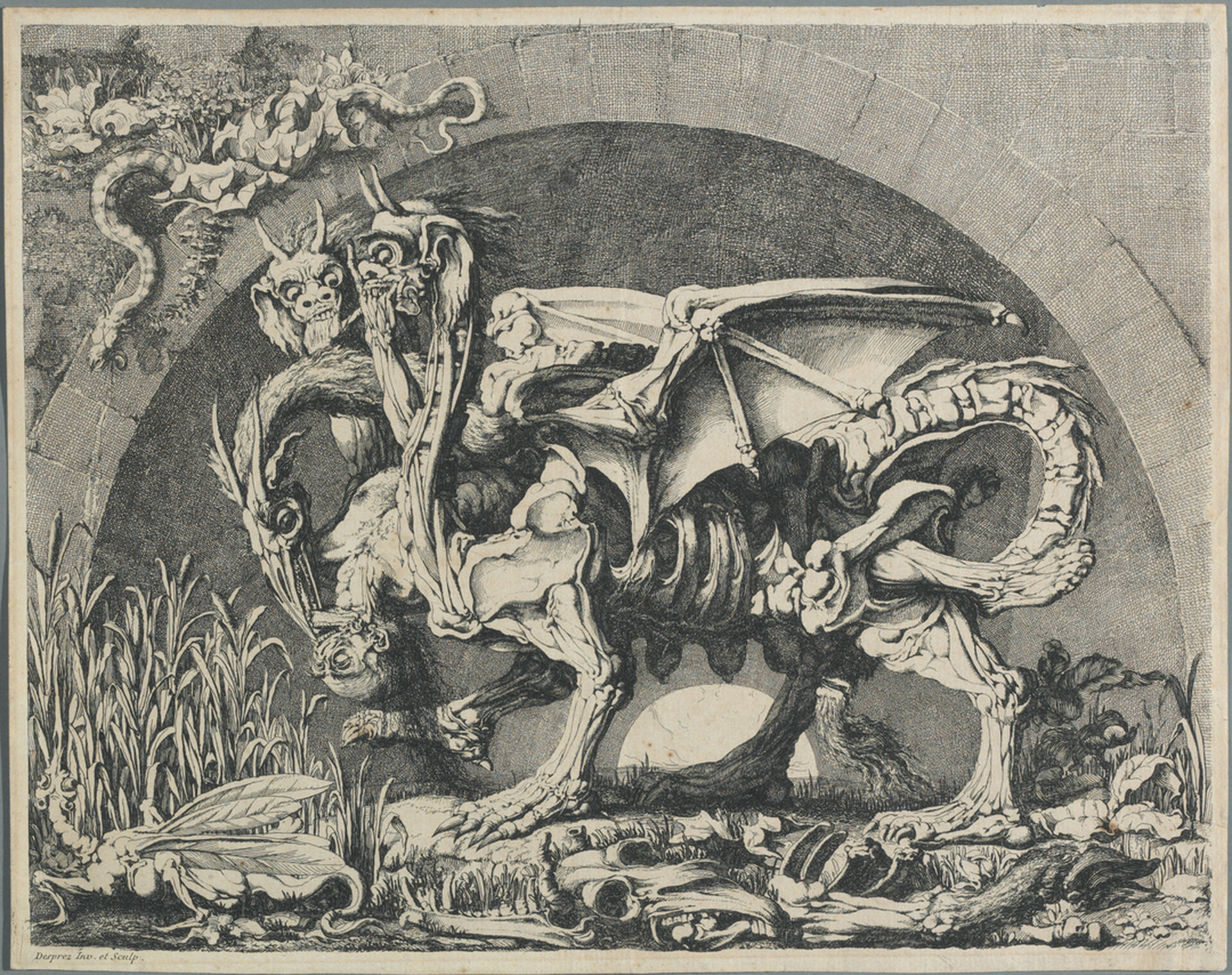Utställningen presenterar ett tjugotal verk – teckningar och grafik – hämtade från såväl Tessinsamlingen som andra delar av Nationalmuseums samlingar. Den visar flera av Desprez viktigaste grafiska blad som vittnar om hans dramatiska och teatrala fantasi. Som den första utställningen på över 30 år tillägnad konstnären tycks han mer aktuell än på länge.
